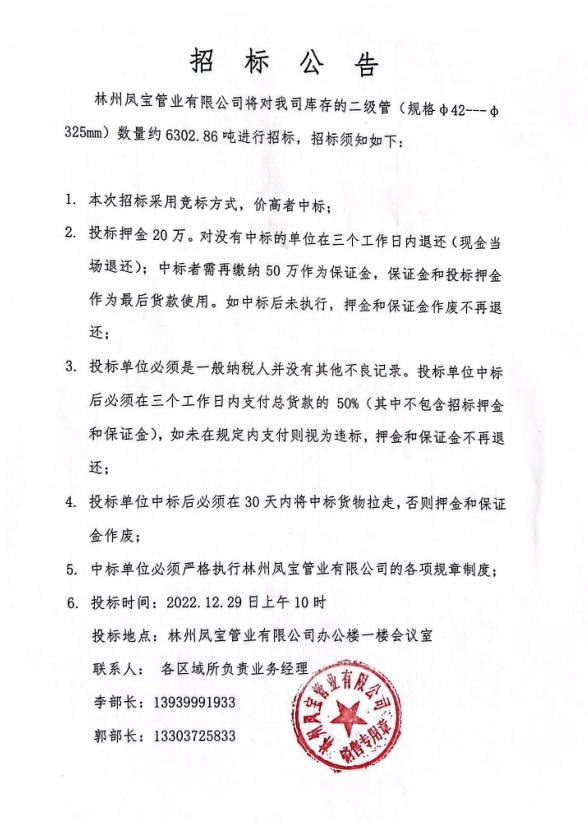 下一篇:林州凤宝管业有限公司二级管招标公告